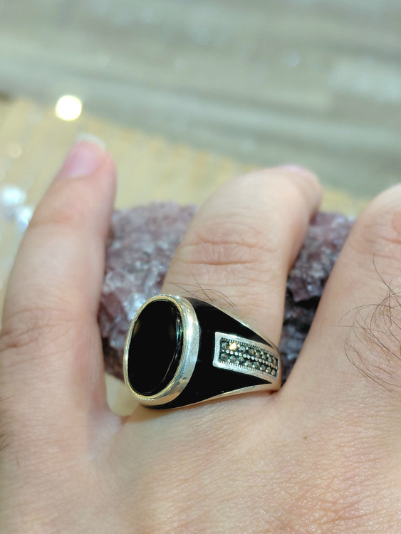 انگشترنقره مردانه ترک عقیق مشکی