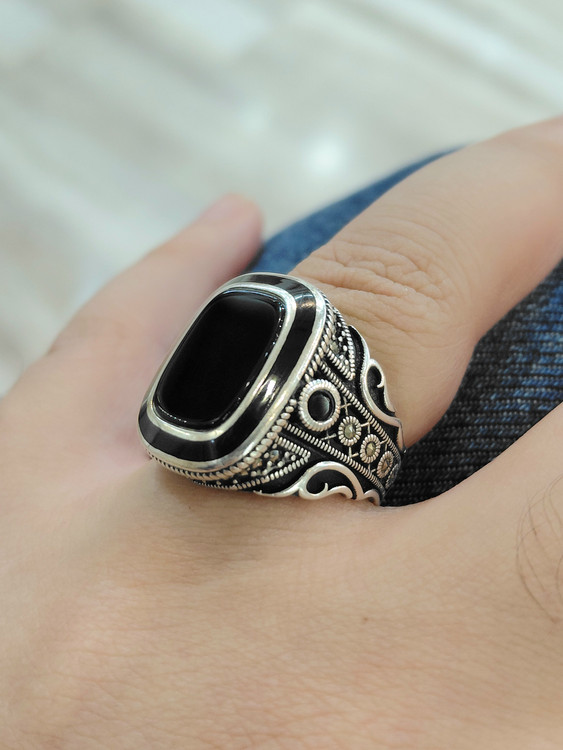 دستهبندی: انگشتر نقره مردانه ترک عقیق مشکی