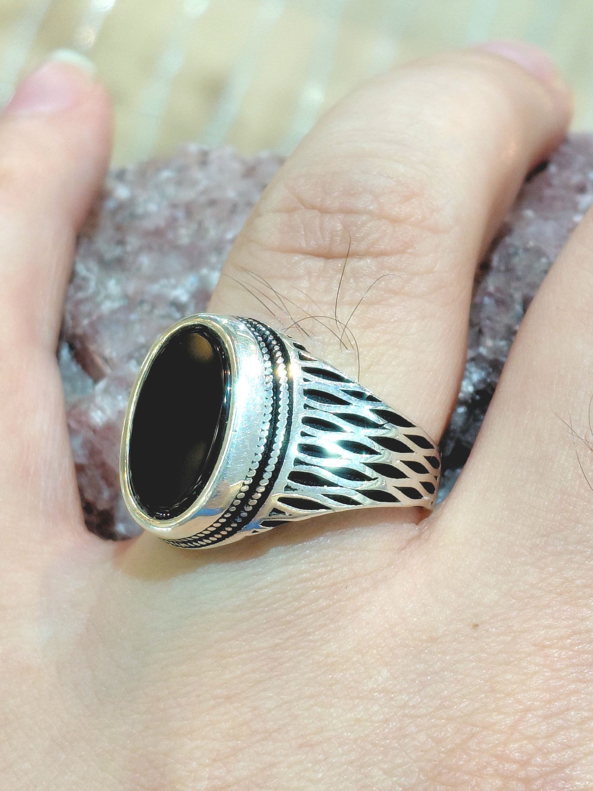 انگشتر‌ نقره‌ مردانه ترک عقیق مشکی