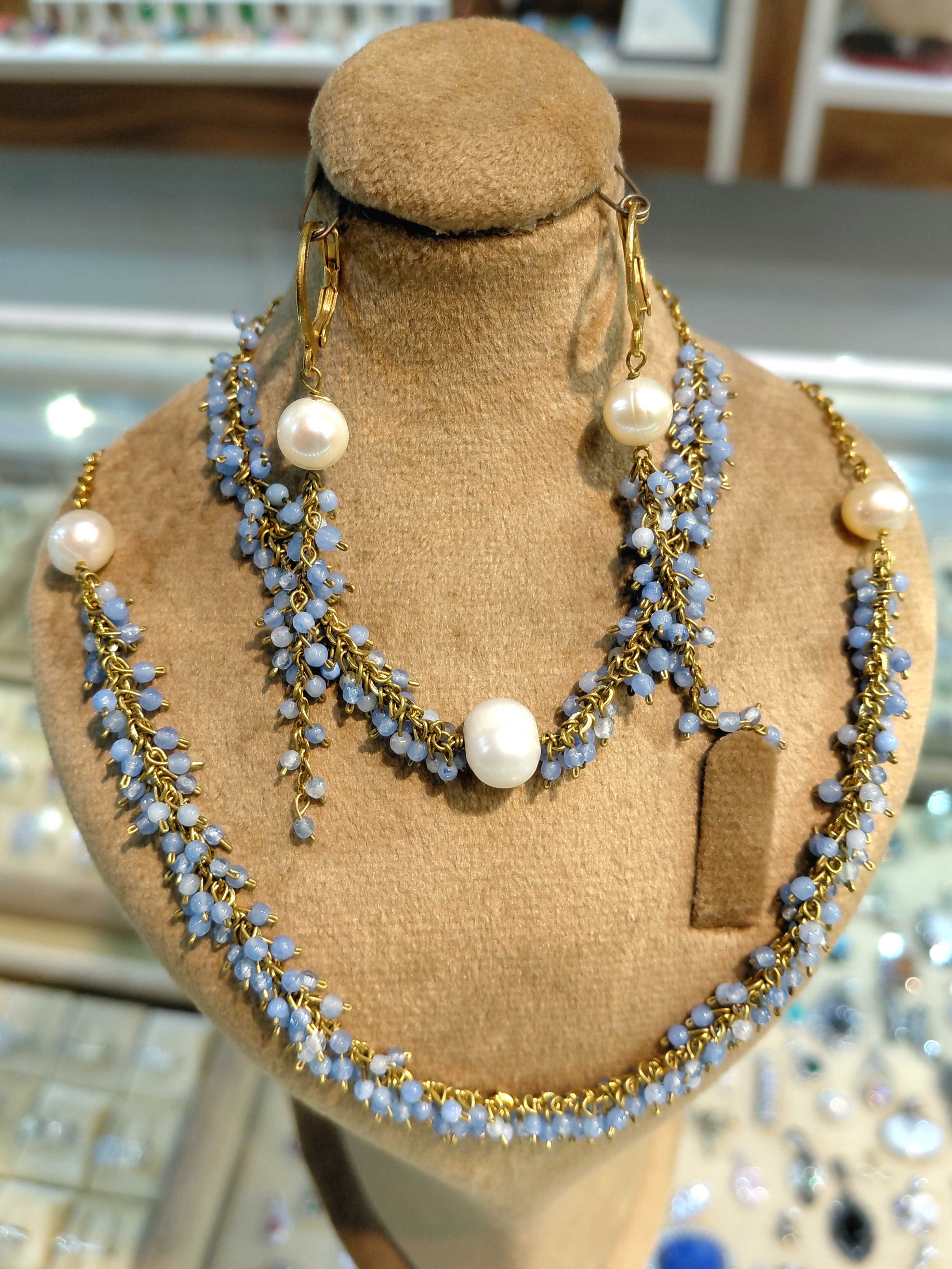 سرویس استیل سنگ ماه تولد( عقیق کبود و مروارید اصل ) همراه با فاکتور اصالت سنگ کبود و مروارید خواص عقیق کبود : دفع انرژی منفی ، کاهش دلهره و نگرانی، بهبود مشکلات ناباروری