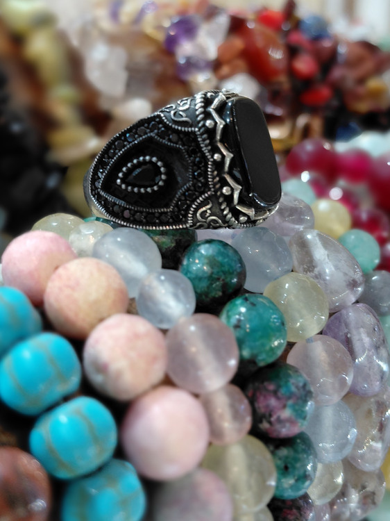 انگشتر‌ نقره‌ مردانه ترک عقیق مشکی