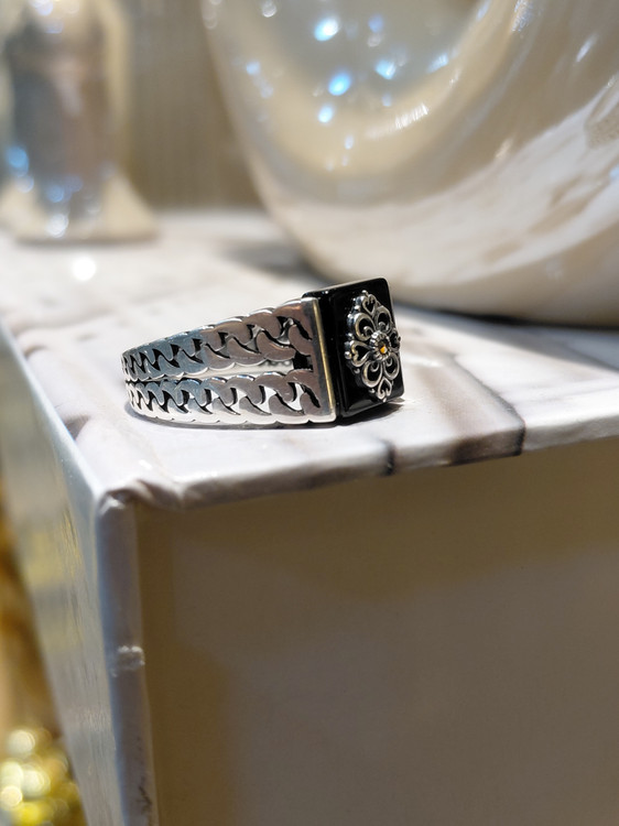 انگشتر نقره مردانه ترک عقیق مشکی