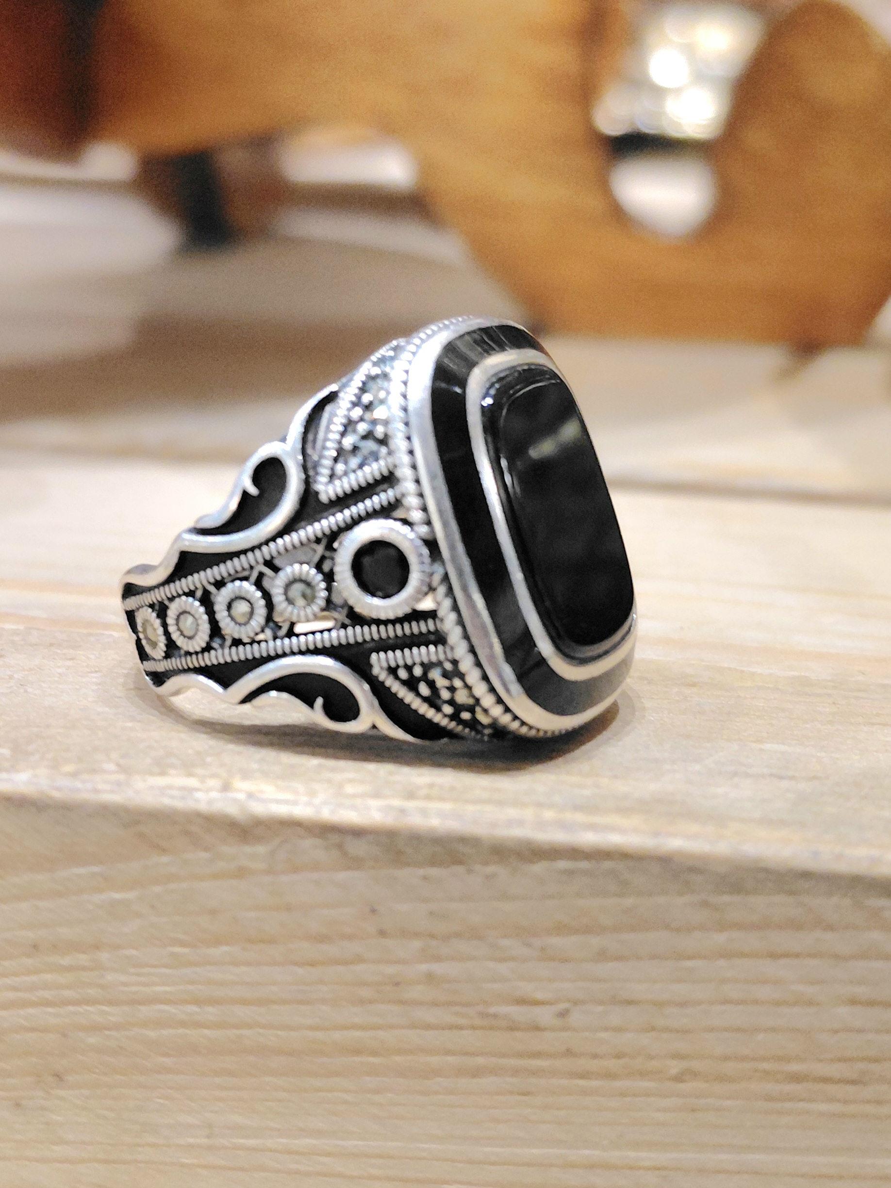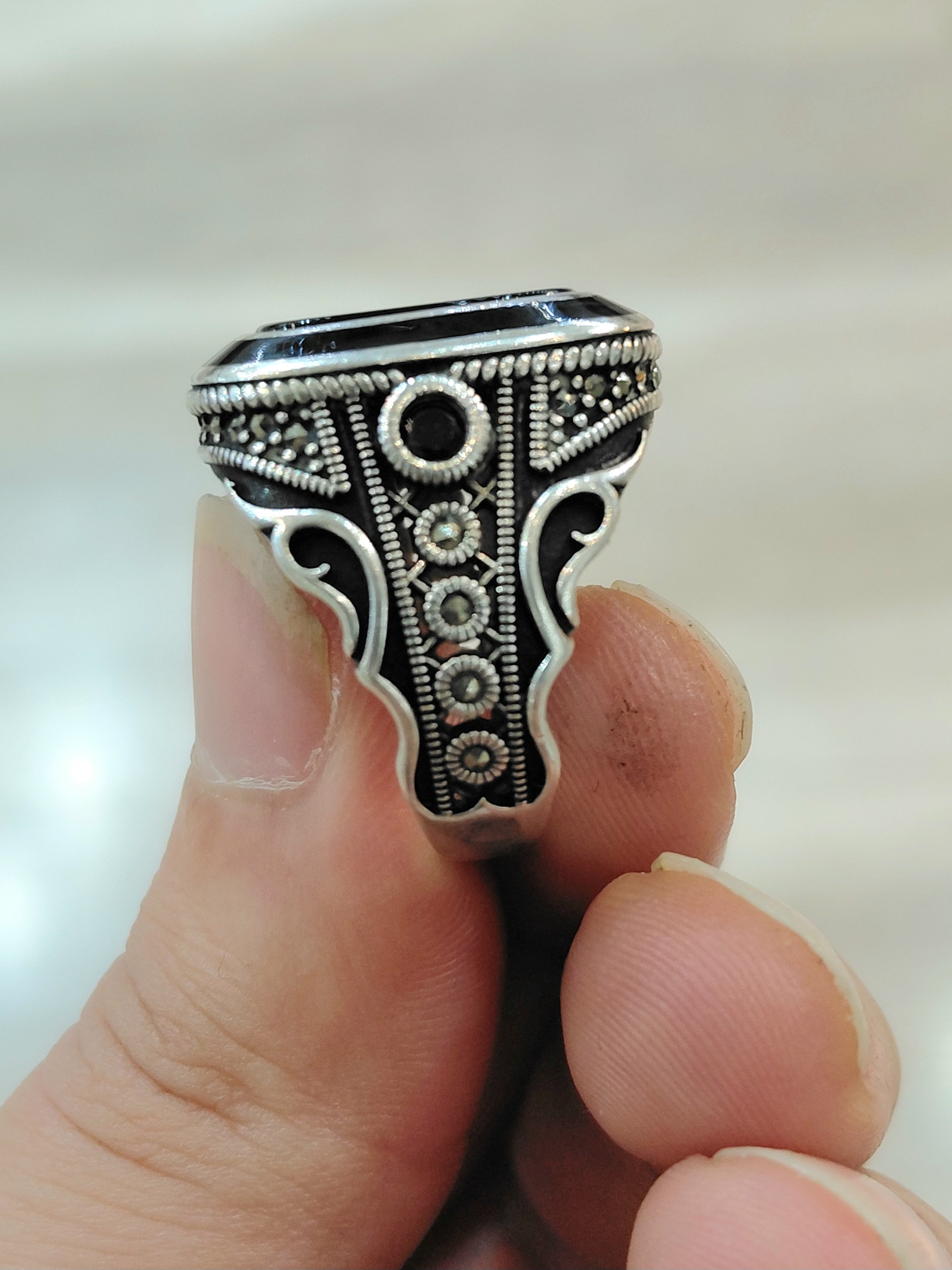 انگشتر‌ نقره‌ مردانه ترک عقیق مشکی