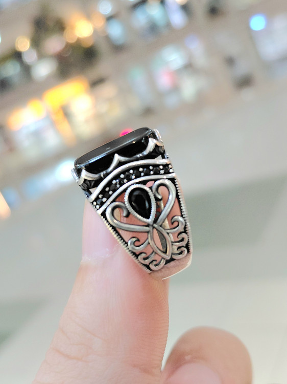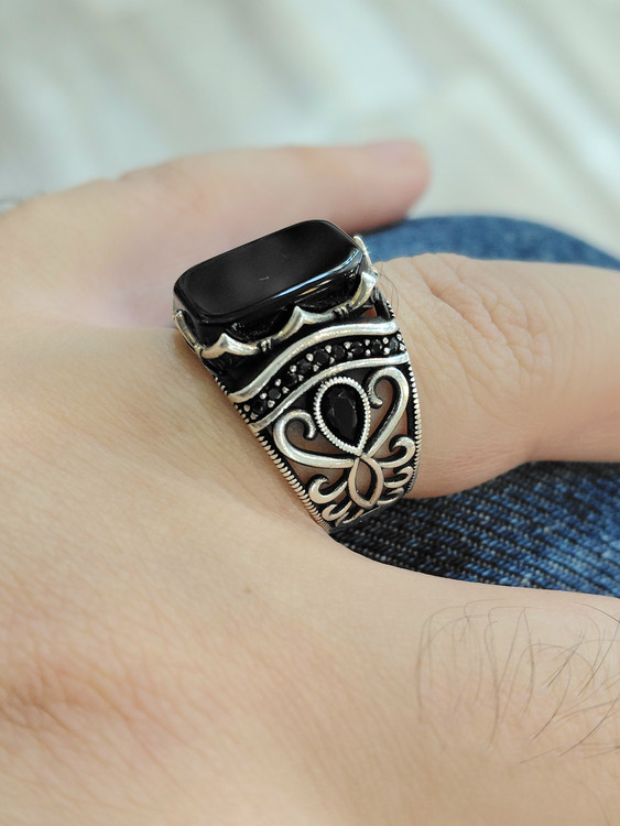 انگشتر نقره مردانه ترک عقیق مشکی